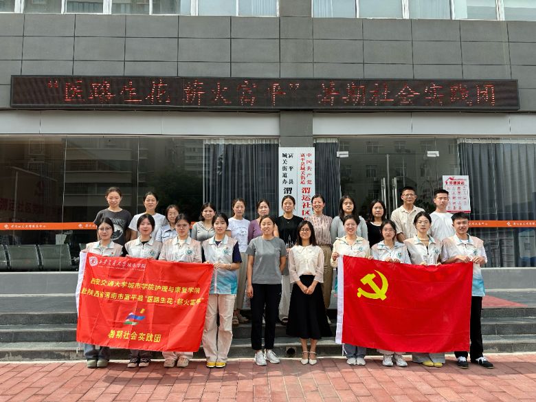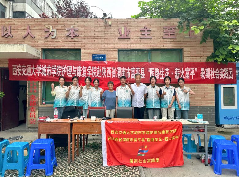 西安交通大學城市學院,護理與康復(fù)學院赴陜西省渭南市富平縣“醫(yī)路生花·薪火富平”暑期社會實踐團,是一支由學院學生黨支部組建的專業(yè)實踐隊伍。團隊由2名專業(yè)指導(dǎo)教師和8名護理系學生黨員組成,充分發(fā)揮護理專業(yè)優(yōu)勢,開展健康義診、醫(yī)療知識普及等志愿服務(wù)工作。