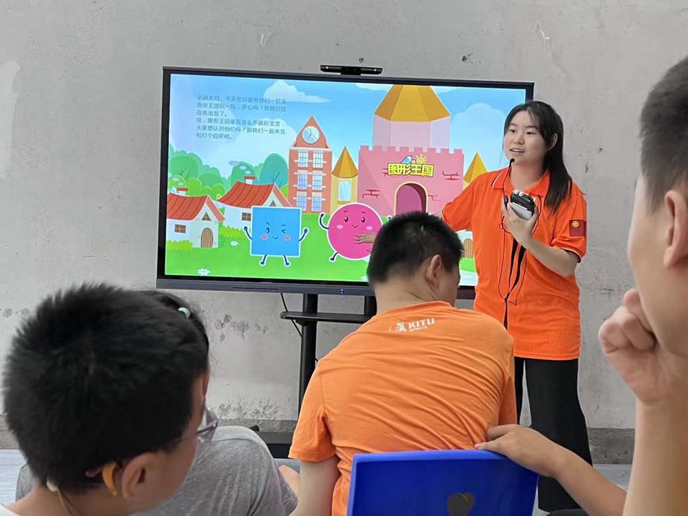 圖為團隊成員開展圖形知識課堂,劉潮萍攝一天的實踐活動結束后,團隊成員們圍坐在一起分享心得體會。黃諾同學表示:"通過講述袁爺爺的故事,我深刻體會到堅持與奉獻的力量。孩子們眼中的光芒讓我明白,教育是點燃希望的火種。"游冬梅同學感慨道:"圖形課堂讓我看到每個孩子獨特的創造力,他們的純真與熱情是對我們最好的回饋。"