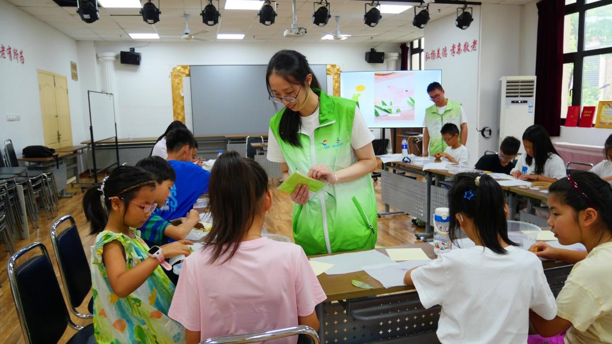 圖為實踐隊員細心指導孩子們并與孩子們溝通活動環節 王熒瑩供圖