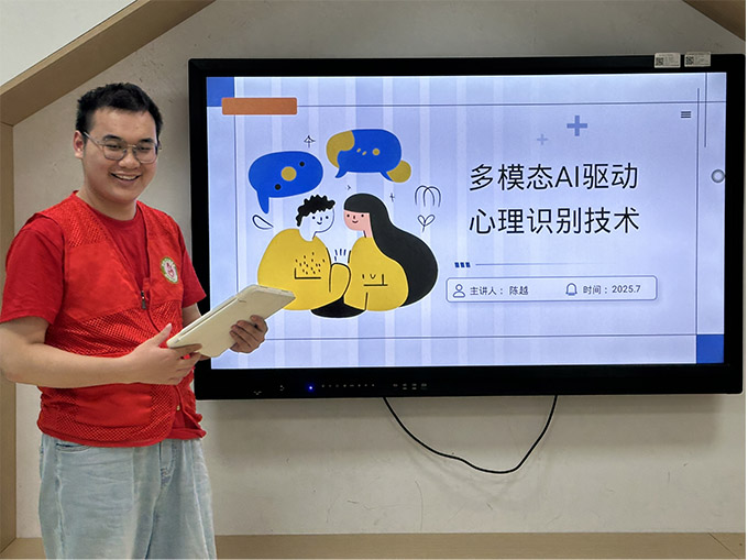 實踐團隊隨后向醫院專家組成員匯報了項目進展。團隊通過多模態深度學習技術,整合語音、微表情、生理信號等數據,構建青少年心理危機預警及孤獨癥兒童溝通輔助系統。團隊成員陳越從算法設計、實際應用及社會推廣三方面闡述了階段性成果。針對匯報內容,醫院醫師們充分肯定了項目的創新性,同時提示實踐團隊更加科學地依據指標設計模型分類,并嚴格遵循倫理規范。