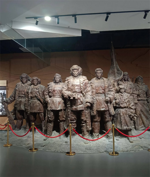 邵紫閣、韓蕾等團隊成員踏入紀念館,莊嚴肅穆的氛圍撲面而來。入口處,楊靖宇將軍的雕像巍然矗立、目光堅毅,仿佛仍在注視著他深愛的這片土地和人民。講解員介紹:“楊靖宇將軍原名馬尚德,他自幼目睹家國飄搖,早早立下救國救民的志向,青年時期便投身革命洪流,將自己的一生都奉獻給了民族解放事業。”