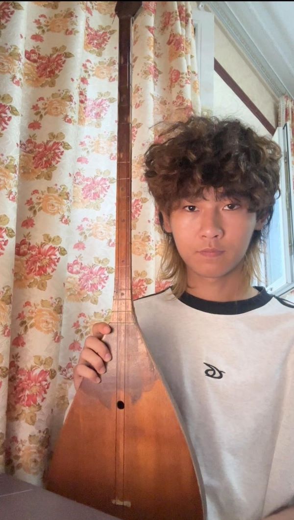 (這是團隊成員佳德拉提和家中的冬不拉琴 佳德拉提攝)