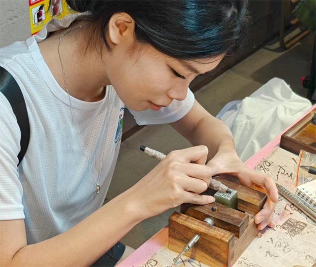 團(tuán)隊(duì)成員體驗(yàn)現(xiàn)場(chǎng)雕刻