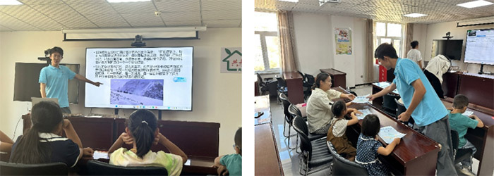 團(tuán)隊(duì)成員師歌給小朋友進(jìn)行水知識(shí)科普和民族團(tuán)結(jié)故事分享 在社區(qū)發(fā)放宣傳海報(bào)