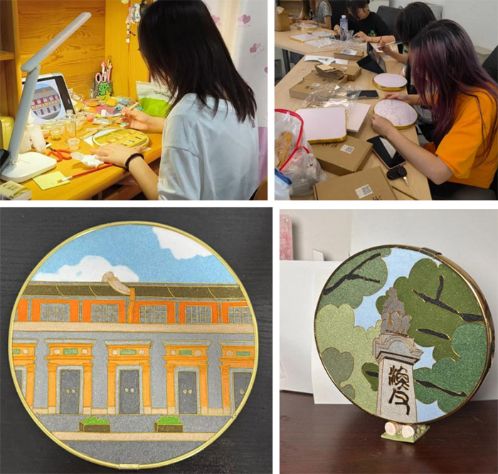 當銅絲精準貼合歷史場景輪廓,彩砂層層暈開先輩熱血色彩,工匠精神與紅色氣節跨越時空相擁。制作中,成員們深刻體悟:紅色足跡從不是靜止標本,而是代代接續的情感長卷,青年的誓言正與歷史脈搏同頻共振。此外,我們還錄制掐絲、點藍工序細節,將非遺技藝與紅色故事打包成線上“紅色系列”微課堂,讓更多人觸摸非遺溫度、聆聽紅色過往。