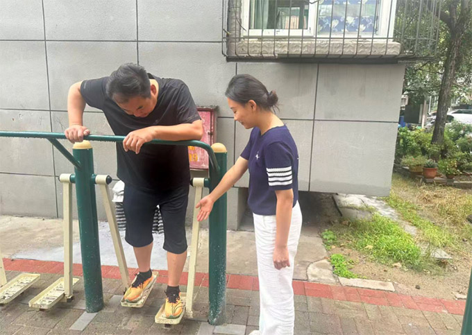 活動(dòng)中,志愿者現(xiàn)場(chǎng)指導(dǎo)社區(qū)居民對(duì)器材的使用方式,還有注意事項(xiàng),并集中講解了運(yùn)動(dòng)前熱身、運(yùn)動(dòng)后拉伸的必要性及基礎(chǔ)方法。對(duì)于年齡較大的居民志愿者特意強(qiáng)調(diào)了“量力而行、循序漸進(jìn)”的安全原則,并采取“分區(qū)講解”的模式,將居民引導(dǎo)至不同功能區(qū),進(jìn)行講解功能。