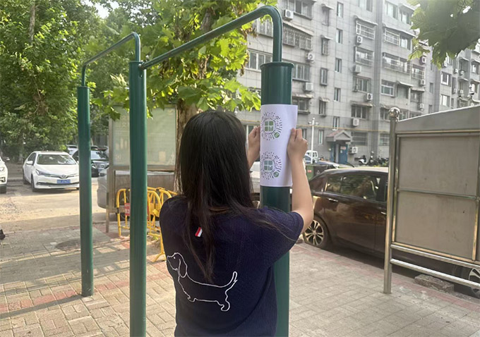 志愿者將準(zhǔn)備好的二維碼貼在每個(gè)對(duì)應(yīng)的器材上,通過(guò)掃碼就能觀看對(duì)應(yīng)器材的標(biāo)準(zhǔn)動(dòng)作演示,視頻詳細(xì)講解呼吸節(jié)奏、動(dòng)作速度和幅度。志愿者還與社區(qū)工作人員一起建立“社區(qū)健身交流群”,并邀請(qǐng)居民加入,形成了線上互助平臺(tái)。