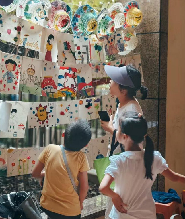圖為家長與小朋友共同參觀部分教學成果。詹杰供圖
