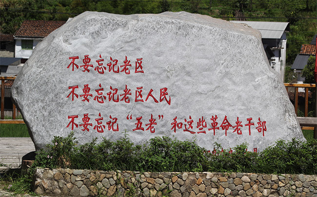 在老游擊隊員黃炳茂的故居院門外,近人高的石碑上深深刻著: