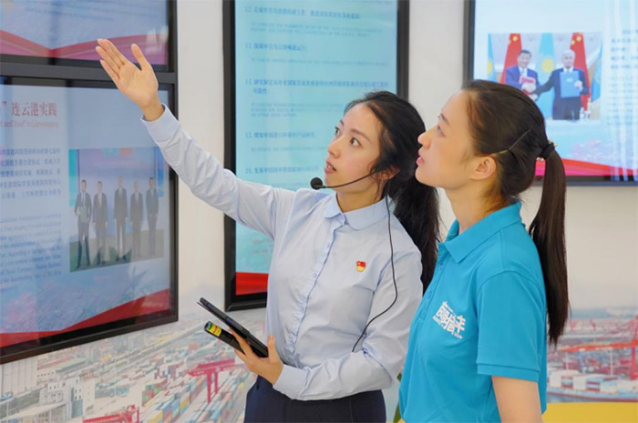 解碼連云港物流合作基地,探索差異化突圍路徑 最后一站,為了更多關注到班列運輸效率與多式聯運協同,團隊深入到了連云港(中哈)物流合作基地。在參觀到數字化調度中心時,團隊成員們了解到雖然每日處理超千標箱,可是仍然存在自動化率低、設備新能源占比不足等問題。當“車船直取”作業直面突發惡劣天氣,多式聯運銜接就變得脆弱。因而針對單證流轉繁瑣、運力波動、產業鏈與物流鏈脫節、依賴政策補貼等要害之處,團隊提出各種巧思,為江蘇班列突破同質化瓶頸提供實踐藍圖,恰似為遠航的船帆綴上星光,讓每一步探索都映照著向新而生的璀璨。