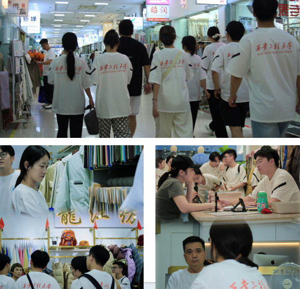 作為亞洲最大的面料集散地,中國輕紡城匯聚超5萬種面料,輻射全球190余個國家和地區(qū)。實(shí)踐隊(duì)深入東市場與聯(lián)合市場,俯身觀察面料經(jīng)緯結(jié)構(gòu),記錄纖維特性與價(jià)格脈絡(luò),與深耕行業(yè)的商戶探討“可持續(xù)面料認(rèn)證”“小單快反模式”等趨勢。