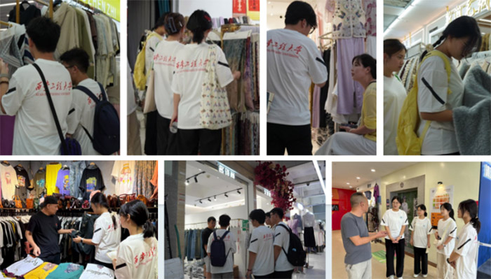 實(shí)踐隊(duì)走進(jìn)華東地區(qū)最大服裝集散中心,探訪四季青服裝市場與意法服飾城。從快時(shí)尚成衣到高端定制,隊(duì)員細(xì)致觀察杭派服飾“簡約優(yōu)雅”的風(fēng)格內(nèi)核,記錄剪裁、面料與色彩的創(chuàng)新搭配。與商戶交流中,“從快時(shí)尚向可持續(xù)設(shè)計(jì)轉(zhuǎn)型”“文化IP融合提升附加值”等觀點(diǎn),揭示了終端市場對上游面料研發(fā)的反向牽引。團(tuán)隊(duì)在市場內(nèi)與商戶深入交流的場景,成為理論對接實(shí)踐的生動注腳。