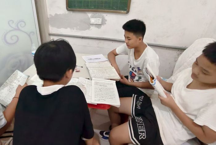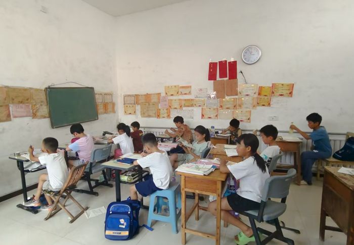 志愿者們教導(dǎo)學(xué)生們學(xué)習(xí)新知識(shí) 劉哲供圖
