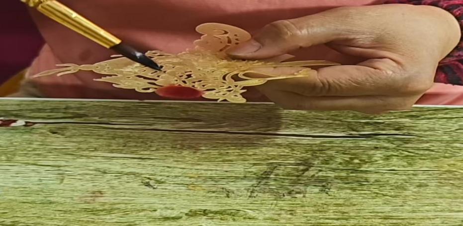 王秀明老師在關于做皮影作品方面具有很深的造詣,她向我們介紹了制作皮影的八大步驟,分別是選皮,制皮,畫稿,過稿,鏤刻,上色,固色,綴結。她耐心地帶著我們一步一步按照步驟完成整個制作流程,其中最具有特點的過程就是鏤刻和上色這兩個步驟,對于手藝人的技術有著很高的要求。我們也深深地體會到制作過程的不易。