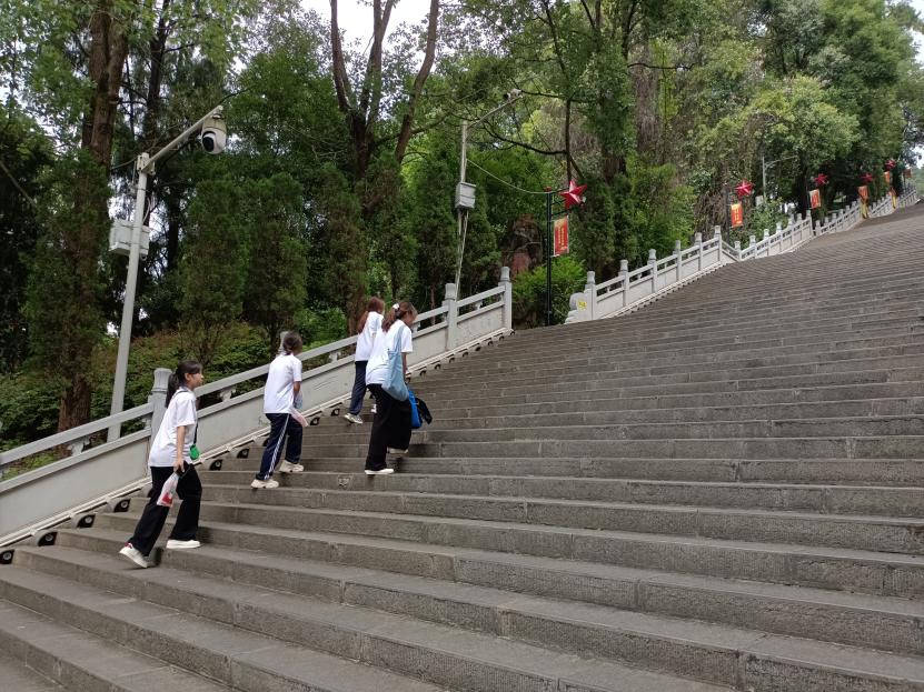 最后,團隊來到遵義紅軍烈士陵園參觀學習。隊員們懷著無比崇敬的心情,踏上遵義紅軍烈士陵園那象征著長征艱辛的百級階梯。每一步都踏在歷史的脈搏上,莊嚴、神圣、崇敬和使命感在心里交織。蒼松翠柏的掩映下,“紅軍烈士永垂不朽”的紀念館巍然聳立,鄧萍將軍墓和紅軍英烈墻莊嚴肅穆。在烈士長眠之地,實踐隊全體成員自發列隊肅立,以深深的鞠躬和默哀,表達對革命先輩的無限追思。這一刻,傳承紅色基因、擔當時代使命的責任感變得無比清晰而沉重。