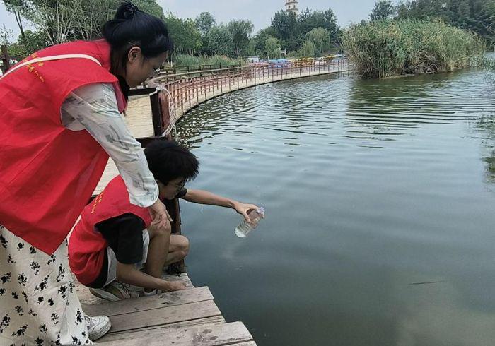 帶著在監測中心汲取的理論知識,小分隊奔赴東風湖開展實地水質調研。隊員們嚴格依據環境監測的技術規范,對湖體的水質情況進行了現場取樣,并詳細記錄了采樣時間、地點、水溫及天氣狀況等關鍵信息。通過此次實地操作,隊員們不僅將在監測中心學到的采樣原理與現場實踐相結合,更直觀感受到了環境保護工作的實際挑戰與意義,完成了從理論認知到實踐感悟的深化。