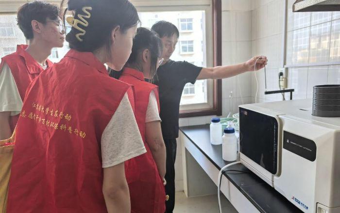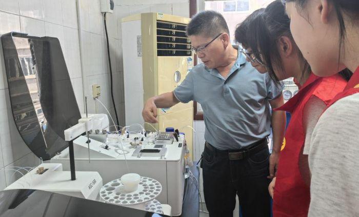 為了后續的實地調研,小分隊在商丘市環境監測中心開啟了深度研學之旅。在實驗室內,技術專家帶領隊員們系統參觀了各類高精度監測儀器,并詳細講解了水、大氣、土壤樣品采集的規范流程以及實驗室分析的基本原理。隊員們近距離觀看了離子色譜、氣相色譜等設備的操作演示,理解了環境監測工作如何像“環境的‘體檢醫生’”一樣,精準識別污染物、守護生態安全。