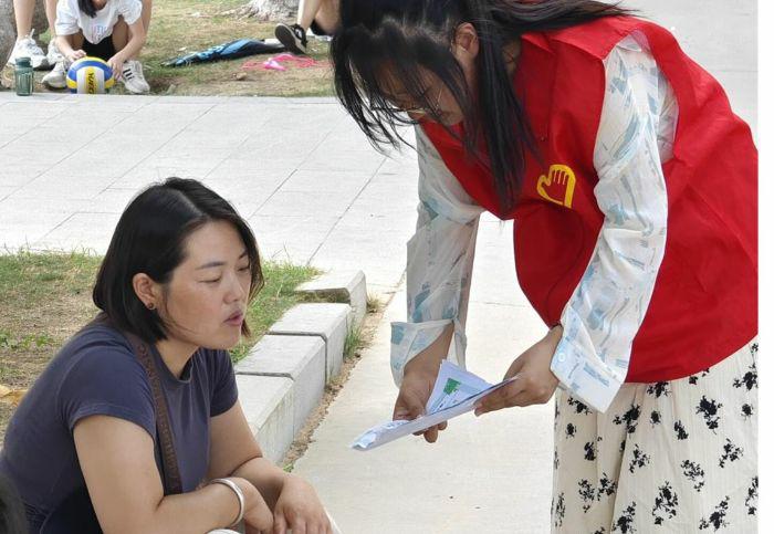 深入公共空間,感知市民環保需求。小分隊走進商丘人民公園,開展“低碳節水”主題問卷調研與宣傳海報分發活動。問卷內容涵蓋環保常識、行為習慣及政策建議,旨在發現公眾認知盲區與宣傳痛點。同時,隊員們結合海報圖文,向市民生動講解低碳生活技巧,如“選用節能電器年省電費可觀”“農田滴灌節水降碳雙贏”等;顒又,隊員們還隨機采訪市民,傾聽他們對本地環保工作的評價與建議,記錄了許多一手觀點與鮮活案例。當一位張大爺準確分享其家庭垃圾分類方法時,小分隊隊長齊珂穎及時給予肯定:“您的行動,就是給子孫的環保榜樣!”