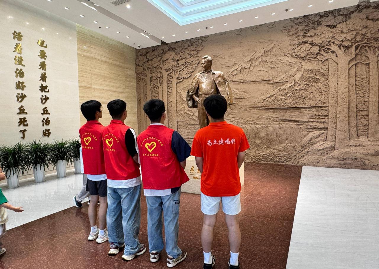 焦桐凝魂 初悟初心實踐隊員踏入紀念館廣場,挺拔的“焦桐”樹蔭如蓋,見證著“縣委書記的榜樣”焦裕祿帶領蘭考群眾治沙的歲月。館內“親民愛民、艱苦奮斗、科學求實、迎難而上、無私奉獻”二十字精神標語下,隊員們駐足聆聽講解員講述焦裕祿“揣著窩頭查風口”“帶領群眾種泡桐”的感人事跡。當看到展柜中補丁摞補丁的被褥、磨破鞋底的布鞋時,不少隊員眼眶濕潤——這些帶著歲月痕跡的實物,讓“人民公仆”的形象從文字變?yōu)榭捎|可感的精神豐碑。