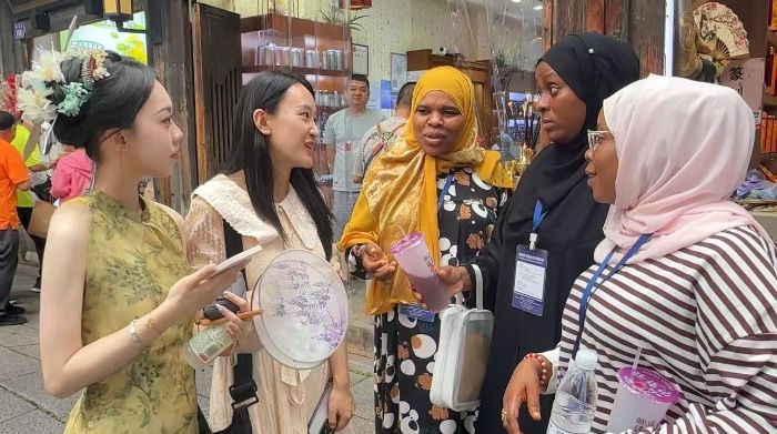 漫步在古色古香的街巷間,團(tuán)隊(duì)偶遇了幾位同樣佩戴三條簪的本地女性。她們的笑容中透露出對這份傳統(tǒng)的自豪與熱愛,仿佛在與祖先進(jìn)行著一場跨越時(shí)空的對話。“戴上它,就感覺自己與這片土地、這份文化有了更深的聯(lián)系,特別驕傲。”一位女士動情地分享道。而更令團(tuán)隊(duì)成員驚喜的是,她們的出現(xiàn)也吸引了外國游客的目光。在熱情的交流中,外國友人紛紛表達(dá)了對三條簪獨(dú)特美感與文化底蘊(yùn)的贊嘆,認(rèn)為它完美融合了女性的優(yōu)雅與力量,是東方文化的一顆璀璨明珠。