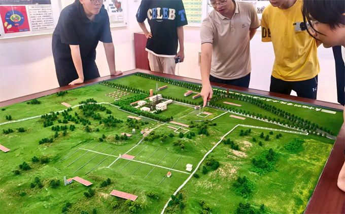 牟老師帶領我們通過沙盤模擬學習沙漠化土地治理的模式,根據不同的土地恢復情況,劃定不同的生產區域,植被恢復良好的,可以用于耕作和放牧,植被恢復較差的則圈地禁牧。通過這一套人與自然相結合的保護模式,可以更好的實現沙漠化治理。