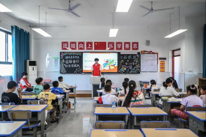 7月4日,湖北醫藥學院醫路童行社會實踐隊奔赴十堰市鄖西縣王家坪紅軍小學,在“醫路童行”愛心托管班里,一場場特別的活動正在溫暖上演。