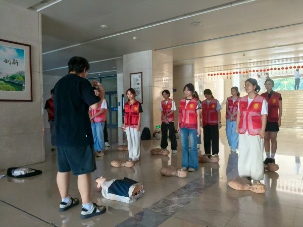 6月27日,實踐隊與暖陽陽陪診實踐隊在科教樓開展聯誼培訓。隊員以CPR實操為核心,結合按壓頻率、深度等關鍵細節現場演示講解,隨后組織雙方隊員分批次實操練習,通過“講解+示范+鞏固”的模式,精準彌補對方專業技能短板,實現跨團隊協作共進。
