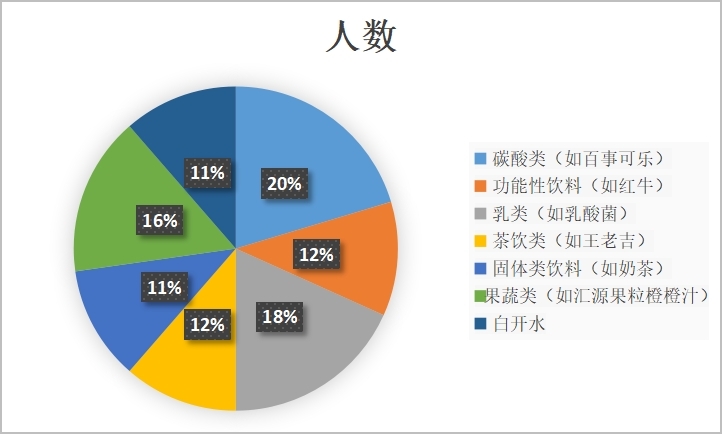 飲用碳酸類飲料的人群占抽樣人群的20%;飲用功能性飲料的人群占抽樣人群的12%;飲用乳類飲料的人群占抽樣人群的18%;飲用茶飲類飲料的人群占抽樣人群的12%;飲用固體類飲料的人群占抽樣人群的11%;飲用果蔬類飲料的人群占抽樣人群的16%;飲用白開水的人群占抽樣人群的11%。從調查結果,可以得知碳酸類飲料在人群中較受歡迎。對此,實踐小組展開對市面上常見的碳酸飲料的含糖量的初步測定。