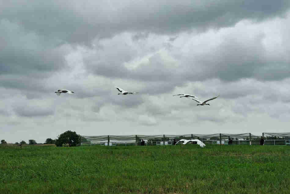 而丹頂鶴作為鹽城濕地自然保護區的代表性物種,其多棲息于四周環水的淺灘上或葦塘邊。為更進一步了解當地生態現狀,“漾然初新”團隊來到鹽城濕地自然保護區的丹頂鶴園區,參與當地的丹頂鶴放飛活動。通過觀察工作人員放飛時的流程,團隊成員了解到,放飛對于丹頂鶴的成長、繁殖具有促進效果。