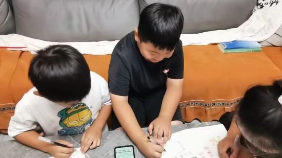 (圖為社會實踐隊員與社區兒童一同繪制法制海報。張宏攝)