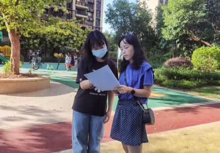 圖為劉城希在社區(qū)向育齡婦女分發(fā)問卷團(tuán)隊成員 王雅萱攝。