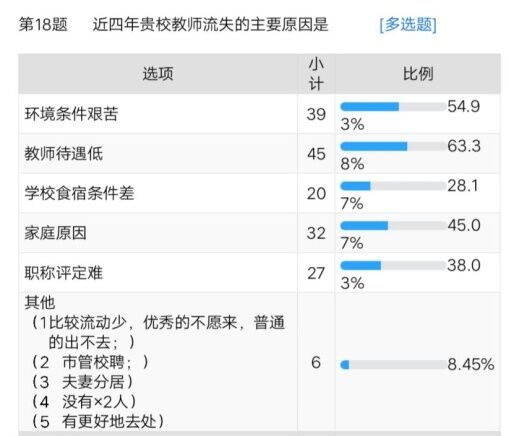 根據《“尋找最美鄉村教師”問卷調查結果》,我們可以看出鄉村教育發展的現狀仍然比較嚴峻。無論是由于基礎設施、經濟原因還是職業評定等原因,都是鄉村教育發展的短板,亟待解決的問題。從而更好的反應現今,鄉村教育、鄉村教師面臨的困難。