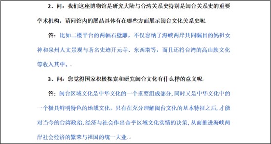 采訪結(jié)束后,我們開始游覽博物館,了解博物館內(nèi)介紹的閩臺兩地的文化關(guān)系。