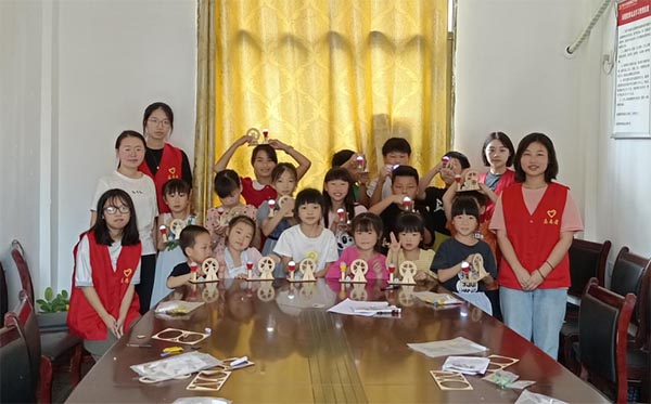 7月3日-7月6日根據(jù)當?shù)貎和瘜嶋H情況,實踐團隊所有成員提前做好教案,并準備好課堂相關材料。準備文具及零食作為獎品,調動兒童積極性。扭扭棒、剪紙、粘土手工、科學實驗及趣味語文這五堂課豐富了兒童暑期課外生活,在給他們帶來快樂的同時培養(yǎng)其動手動腦能力及創(chuàng)造力。