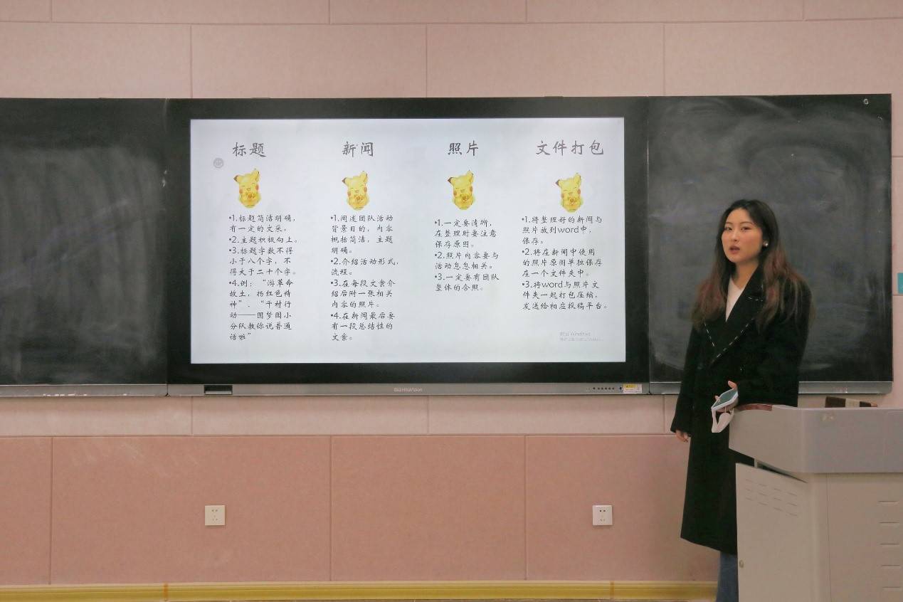 圖為實踐隊成員向大家講解稿件寫作注意事項。中國青年網(wǎng)通訊員 馬晨旭 供圖