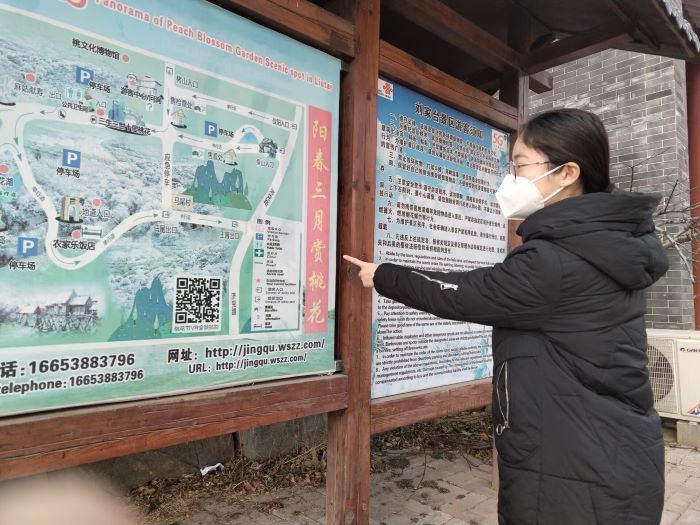 圖為實踐隊員觀看劉臺村桃花源景區(qū)全景圖。 中國青年網(wǎng)通訊員 朱華萌 供圖