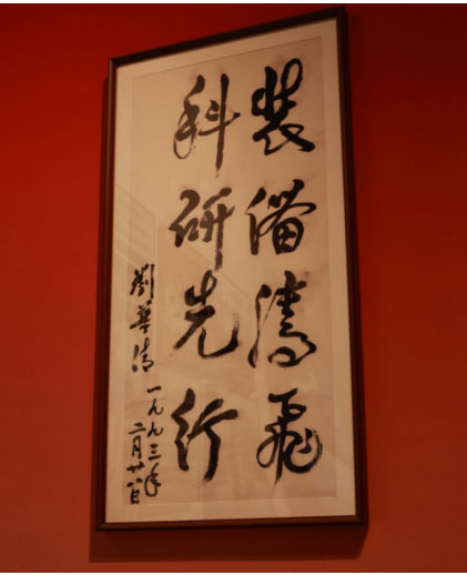 展廳內(nèi)“裝備騰飛,科研先行”的口號(hào)