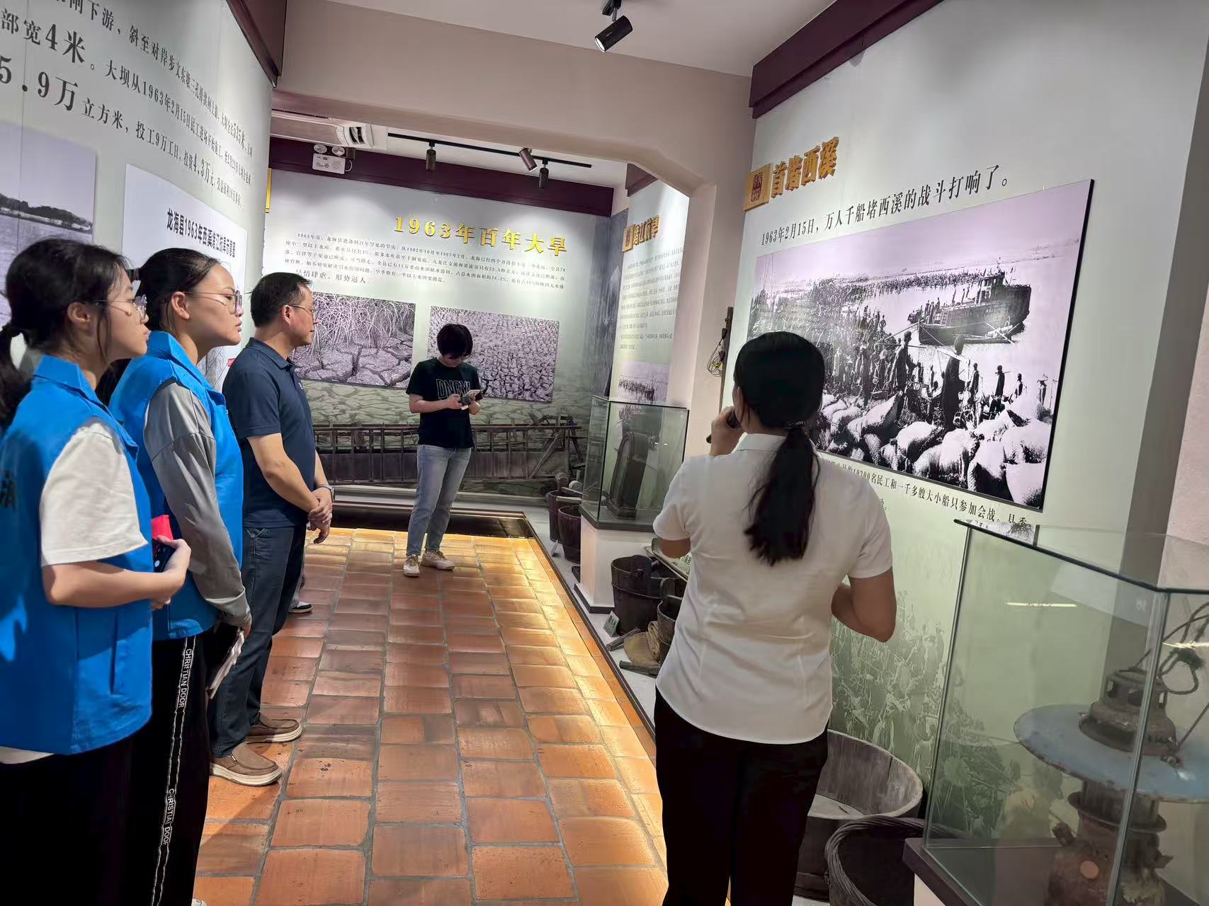 (二)精神洗禮,傳承龍江水利精神隨后,實踐隊赴龍江精神展示館。館內上世紀60年代堵江截流的歷史照片、水利工具、抗洪衣物等,再現抗旱救災歲月;“1963年西溪堵江抗旱示意圖”,展現龍海人民“淹千畝田,灌十萬畝”的抉擇。聽著講解,隊員仿佛親歷物資匱乏年代,龍海人民眾志成城、人力扛建材、戰旱情保糧食生產的場景,深刻領會“顧全大局、團結協作、無私奉獻”的龍江精神。
