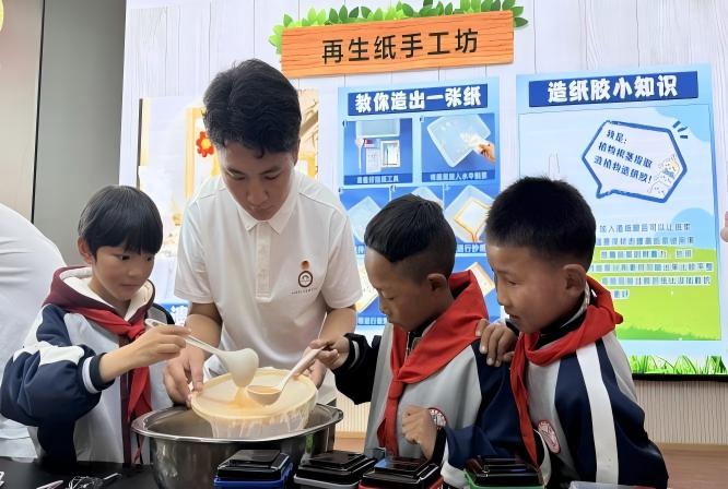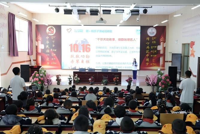 實踐團(tuán)走進(jìn)墨竹工卡縣扎西崗鄉(xiāng)南京希望小學(xué),精心打造“七彩課堂”教育幫扶品牌,為130余名鄉(xiāng)村學(xué)生帶去多彩知識盛宴。“青言理響”紅色宣講課堂生動講述熱愛祖國、民族團(tuán)結(jié)和社會主義核心價值觀,在孩子們心中播撒紅色種子;藍(lán)色科技課堂弘揚(yáng)“兩彈一星”精神,帶領(lǐng)孩子們感受科學(xué)力量,激發(fā)科技報國夢想;金色財商課堂推出“財富樹成長計劃”,通過情景模擬與游戲互動,引導(dǎo)孩子們認(rèn)識貨幣、理解儲蓄、學(xué)習(xí)理財,樹立起正確的財富觀念;綠色環(huán)保課堂妙趣橫生,將環(huán)保理念融入“垃圾分類大闖關(guān)”“再生紙手工坊”等游戲活動,孩子們在動手實踐中深化環(huán)保理念;“淮墨新韻”雙語歌會上,普通話填詞的藏族民謠悠揚(yáng)動聽,漢藏學(xué)子攜手歡唱,用跨越語言的歌聲架起民族團(tuán)結(jié)的連心橋。這堂跨越千里的七彩課堂,不僅為雪域高原的孩子們打開了知識之窗,更用愛與智慧譜寫了民族團(tuán)結(jié)的動人樂章。