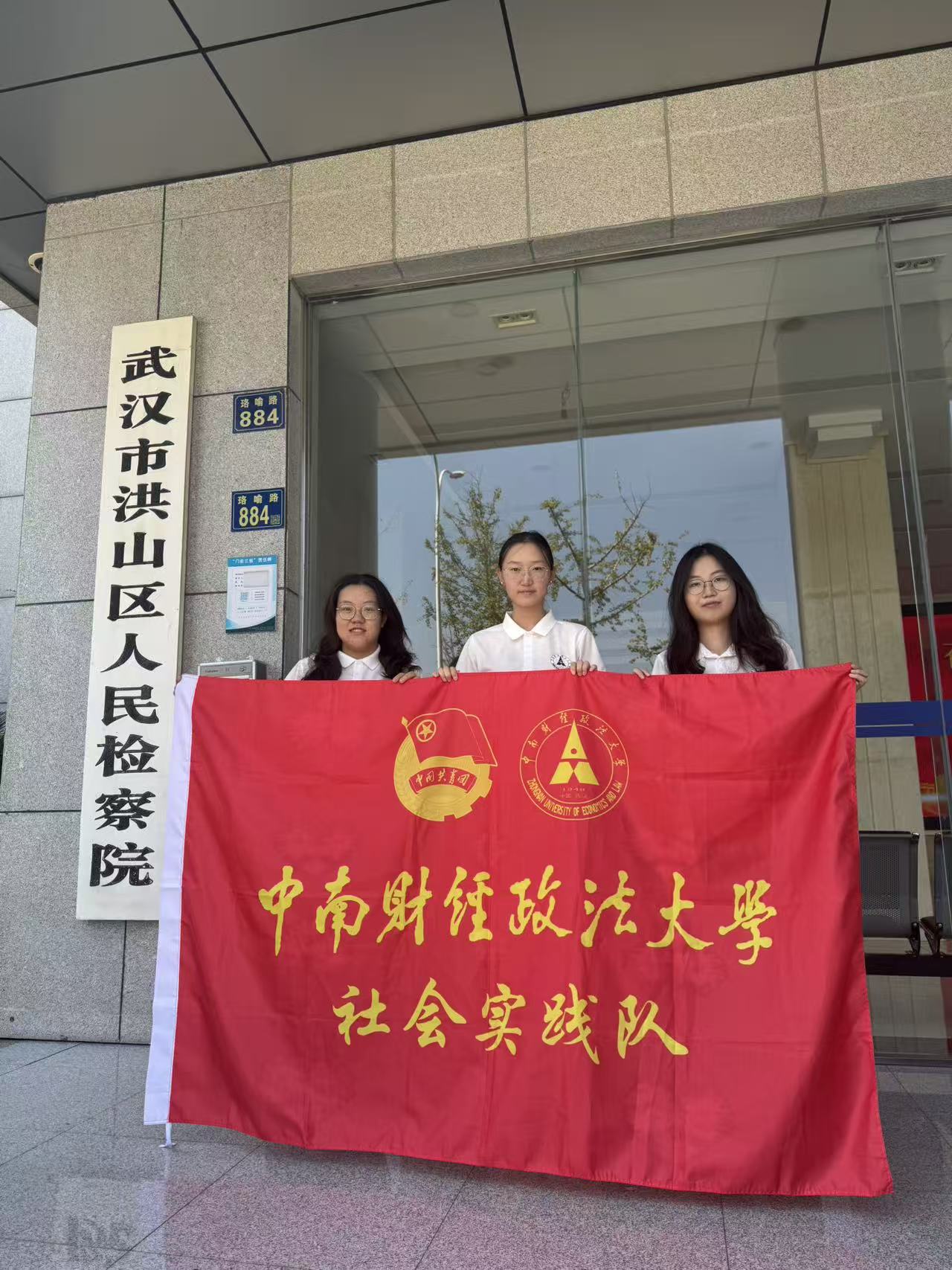 圖為實(shí)踐隊(duì)成員在武漢市洪山區(qū)人民檢察院前的合影 (王靜茹攝)