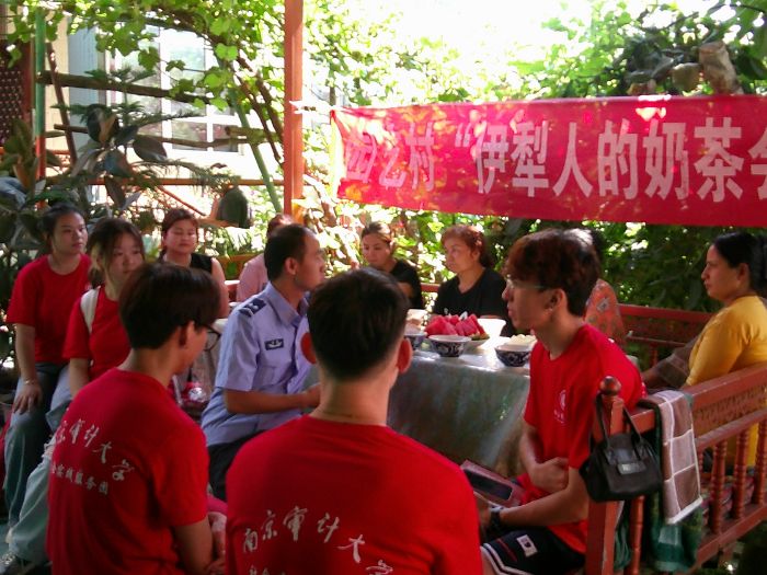 2025年7月20日,社會實踐成員來到了園藝場每月都會舉辦的“伊犁人的奶茶會”。此次奶茶會旨在促進民族團結,深入了解基層需求,助力地方發展。通過面對面的交流互動,增進彼此的了解與信任,凝聚起共同奮斗的力量,它是村委會向村民宣傳國家政策與惠民政策,解答基礎常見問題,促進民族團結,溝通交流的重要平臺。