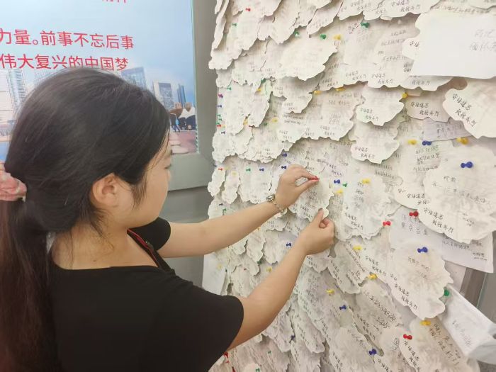 青島市革命烈士紀念館內,莊嚴與肅穆浸潤著每一寸空間。從抗日戰爭的烽火硝煙到解放戰爭的雄壯史詩,無數革命先烈用生命書寫了對黨和人民的無限忠誠。隊員們輕輕走過展廊,仿佛聽見英雄們的鏗鏘誓言,看見他們為民族獨立和人民解放奮勇向前的身影。在紀念館心愿墻上,隊員們鄭重寫下:"這盛世如您所愿,我輩必將不負時代、不負韶華。"