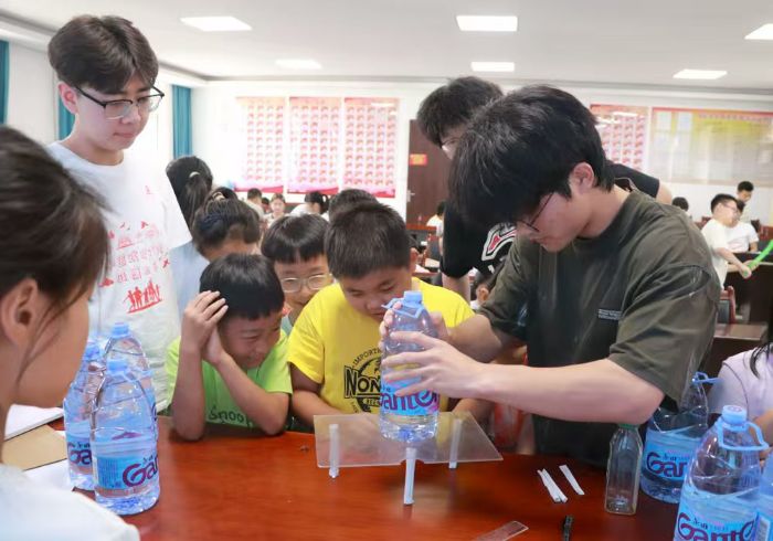 自制水噴泉靈感源于農業灌溉技術的革新需求,響應國家鄉村振興戰略對現代農業科技的號召。小朋友們巧妙地利用了連通器原理與壓強差,將不同高度的塑料瓶通過吸管或軟管連接組成。在較高容器中注入水,利用水的重力制造壓力,迫使水流通過管道,最終在低處或特定噴頭處形成向上的噴泉效果。