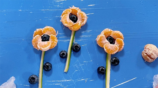 最動人的是創(chuàng)作時分:孩子們專注的眼神猶如星辰閃爍,志愿者們溫暖的鼓勵恰似和風(fēng)細(xì)雨。當(dāng)一幅幅充滿想象力的作品呈現(xiàn)時,整個教室仿佛變成了藝術(shù)畫廊。有孩子用西瓜雕出了太陽的模樣,有家庭用葡萄串成了銀河的形狀。每一個作品都是心與心對話的見證,志愿者送上的卡通貼紙,更是為這美好的時刻鐫刻下永恒的紀(jì)念。