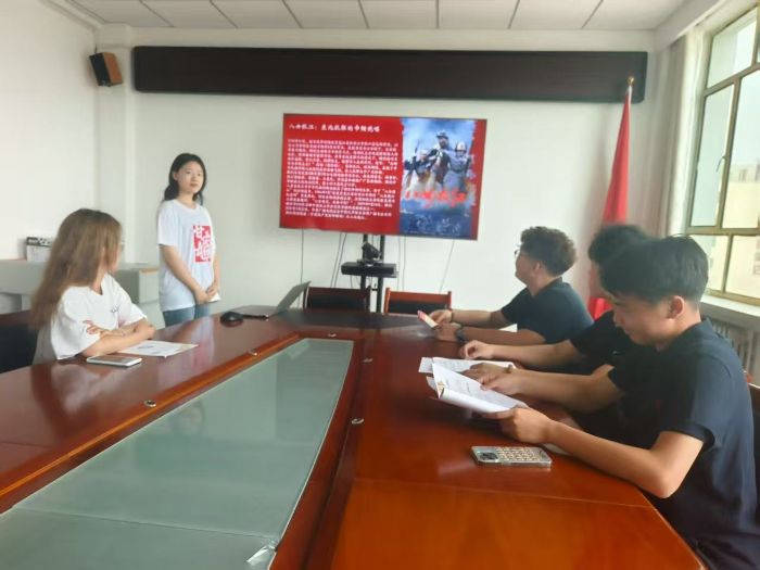 實踐團成員李思思在社區黨員活動中心宣講抗戰歷史,展示英雄事跡,號召青年汲取力量,擔民族復興重任,引發同齡人共鳴。