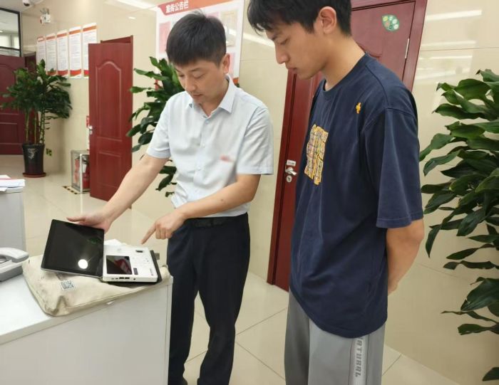 濟南農商行工作人員為團隊成員介紹便捷式智慧機
