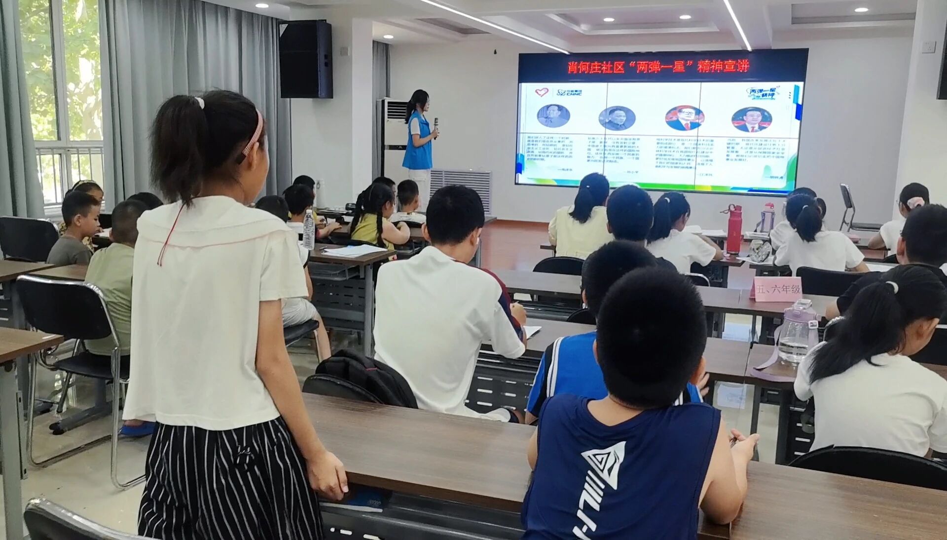 宣講過程中,志愿者首先通過一段視頻向青少年展示“兩彈一星”事業發展的艱辛歷程,隨后用通俗易懂的語言講述新中國成立初期面臨的種種困難,再到科研人員們如何克服重重挑戰,最后成功研制出原子彈、氫彈和人造衛星。志愿者還提到為國家機密而隱性埋名多年的鄧稼先、在飛機失事時用生命守護機密文件的郭永懷以及在艱苦環境中默默堅持研究的于敏。科研人員在困境中堅持國家利益至上、默默奉獻的精神,讓青少年眼中閃爍著光芒。