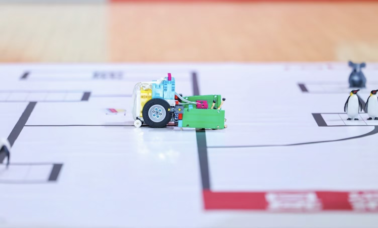 活動前,我們接受了系統(tǒng)培訓,學習機器人基礎(chǔ)操作、兒童心理溝通技巧及應(yīng)急事件處理方案。賽道設(shè)計模擬了“極地冰川”(企鵝救援)、“濕地沼澤”(丹頂鶴救援)和“草原荒漠”(袋鼠救援)三大生態(tài)場景,既考驗機器人的功能性,也暗含環(huán)保教育隱喻。我參與了賽道道具的擺放與安全檢查,確保每一塊積木、每一個位置都符合兒童操作標準。