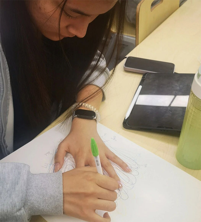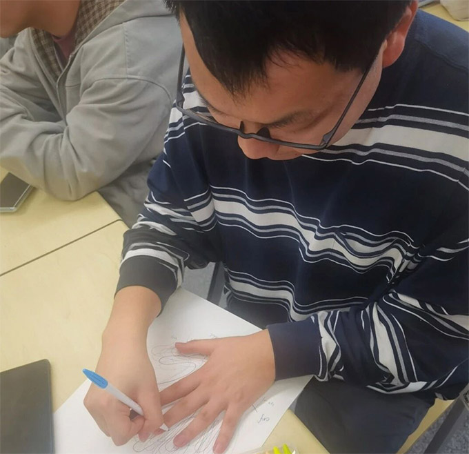 隨著活動推進,教室里的創作熱情愈發濃厚。有的同學專注勾勒掌紋,有的認真挑選彩筆,各有各的投入模樣。在這個過程中,同學們不僅釋放了科研與生活中的壓力,更通過這張承載著所有同學手輪廓的紙,感受到了與全班同學緊密相連的溫暖,心靈在互動與創作中得以舒展愉悅。