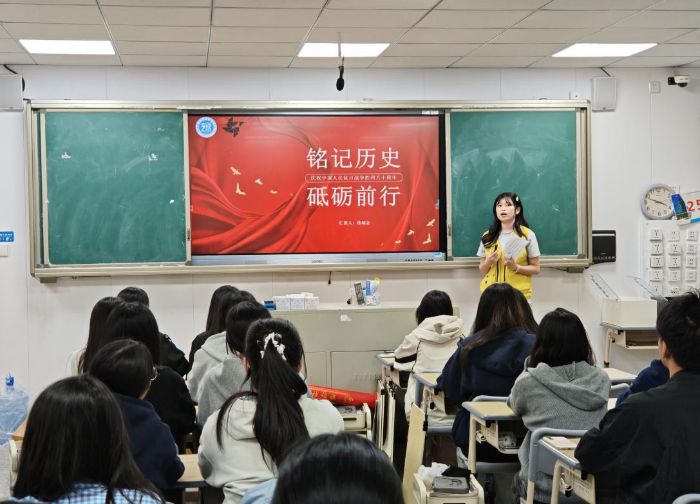 福州大學至誠學院池城金同學以“銘記歷史,砥礪前行”為題,為商貿專業教學部全體團干講授專題團課。她從抗戰背景、浴血歷程、勝利意義及未來展望四個層面展開,通過詳實史料,帶領團干回顧民族危亡與先烈抗爭的歷史,深化“以史為鑒”的認知,堅定紅色基因傳承信念,夯實團支部思想根基。